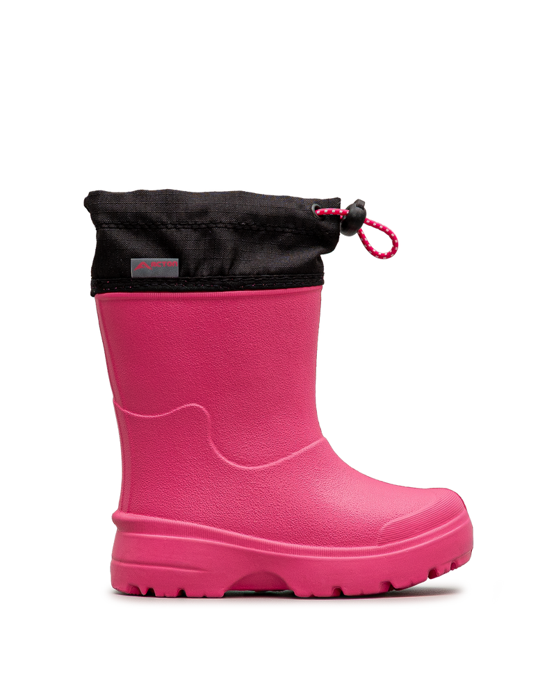 Ces bottes roses offrent une protection joyeuse contre les intempéries. Leur col ajustable avec cordon empêche l'eau et la neige de pénétrer. La semelle crantée assure une traction fiable sur surfaces mouillées. Acton conçoit ici une botte pratique et colorée qui transforme les journées pluvieuses en aventures amusantes, parfaite pour les enfants qui adorent sauter dans les flaques.