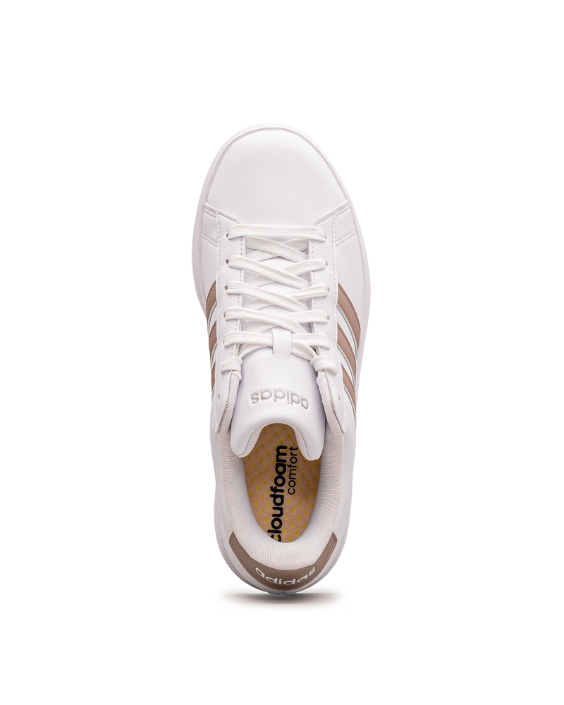 Ces chaussures Adidas blanches allient style épuré et confort pratique pour un usage quotidien. Leur silhouette intemporelle est agrémentée de détails beige rosé subtils. Légères et faciles à enfiler, elles s’adaptent aisément à toutes les tenues. Une option idéale pour les femmes à la recherche de simplicité tendance.