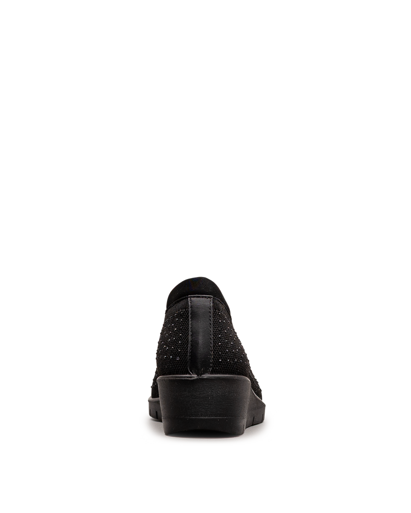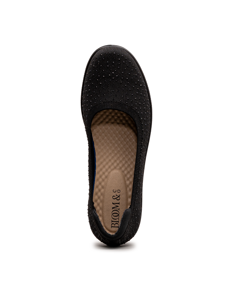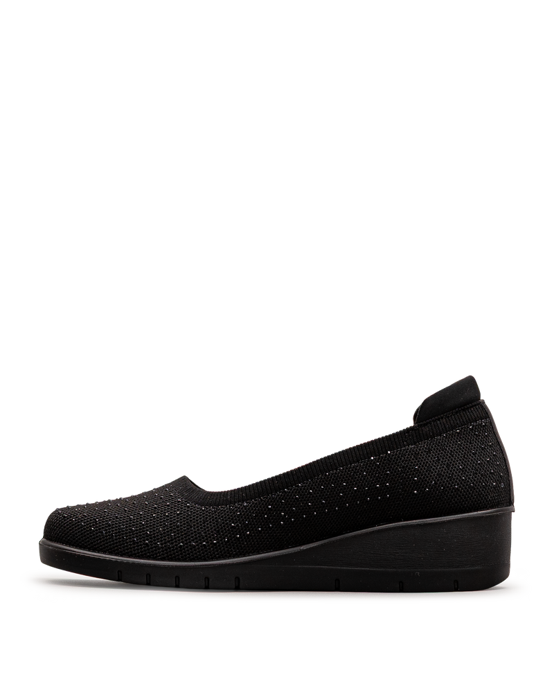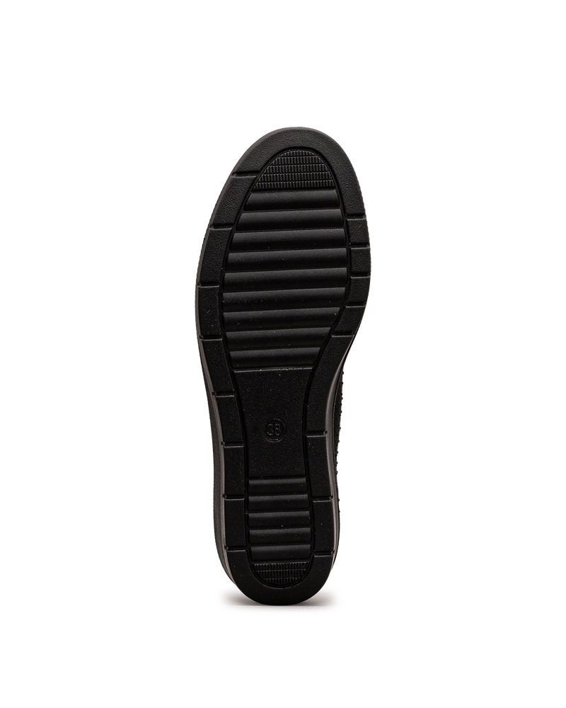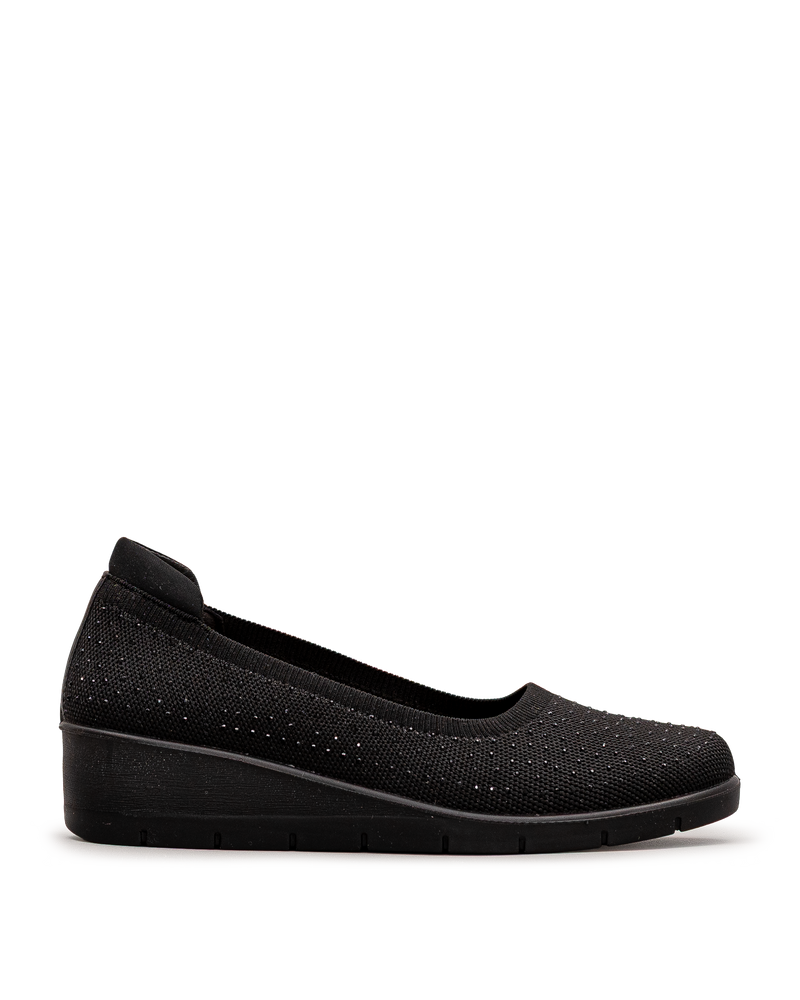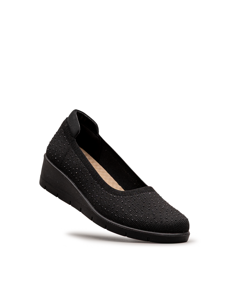 Ces chaussures noires affichent un tricot avec un motif perforé décoratif et un effet scintillant subtil qui ajoute une touche d'élégance. Leur conception sans lacets permet un enfilage rapide et pratique au quotidien. La semelle compensée noire offre confort et légèreté pour vos déplacements. Leur maille respirante assure une bonne aération tout au long de la journée. Un modèle signé Bloom&co qui combine style décontracté et facilité d'utilisation pour vos activités quotidiennes.