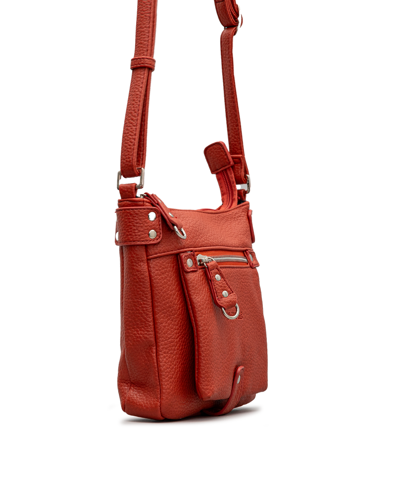 Égayez votre quotidien avec ce sac à bandoulière en cuir végane rouge de Bloom & Co. Ce sac compact et fonctionnel est parfait pour transporter vos essentiels avec style. Sa poche avant pratique vous permet d’accéder facilement à vos objets les plus utilisés, tandis que le cuir de haute qualité et les détails métalliques ajoutent une touche de caractère. Idéal pour un look décontracté ou pour apporter une touche de couleur à vos tenues habillées, ce sac à bandoulière est l’accessoire parfait pour toutes les occasions.