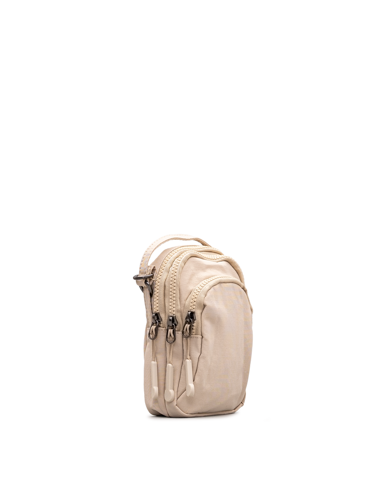 Ce mini sac beige Bloom & Co est parfait pour les sorties où légèreté et organisation sont essentielles. Son format compact comprend plusieurs compartiments à fermetures éclair. Facile à porter en bandoulière, il garde vos essentiels à portée de main. Un accessoire discret et tendance pour toute occasion.
