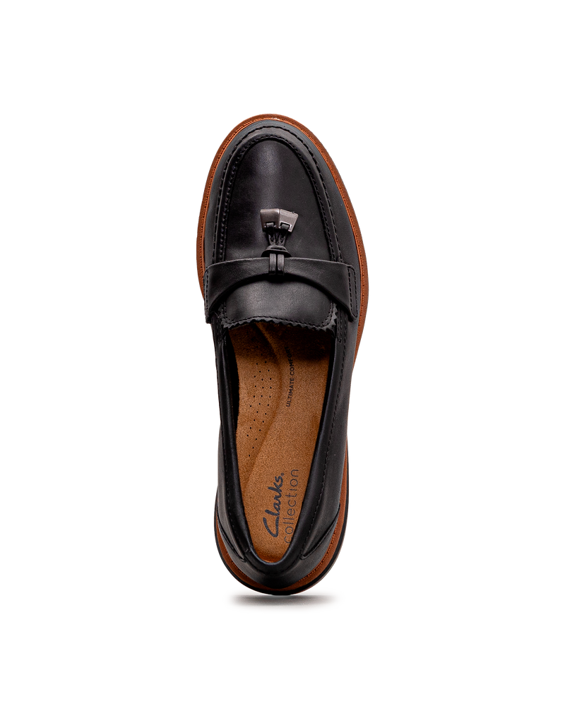 Ces chaussures noires se distinguent par leur design sobre et sophistiqué, idéal pour un usage quotidien. Leur semelle robuste assure un confort optimal à chaque pas. Faciles à enfiler, elles combinent élégance et praticité. Un choix parfait pour celles qui recherchent style et confort, signé Clarks.