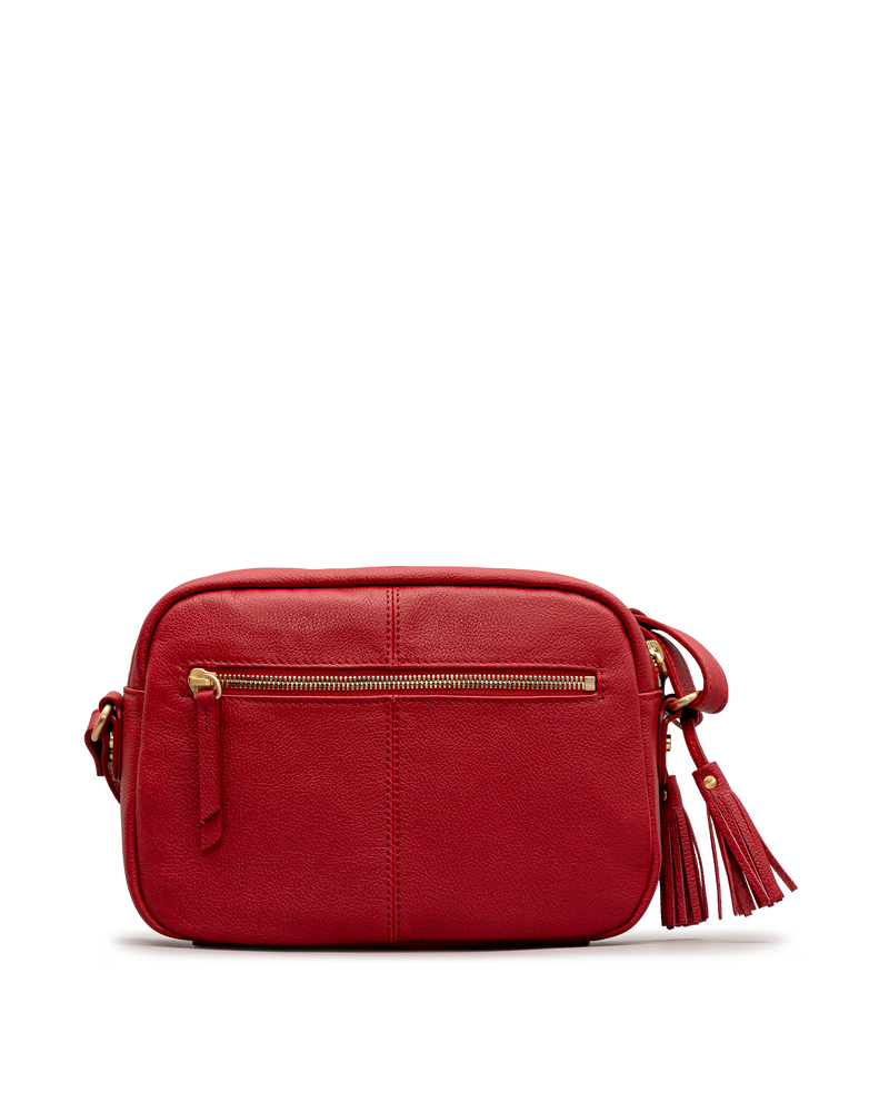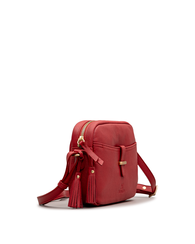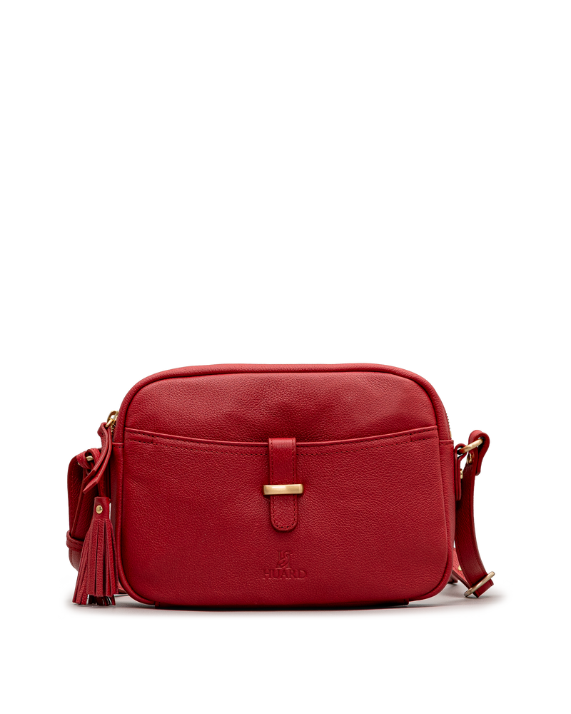 Ce sac bandoulière rouge Huard au format compact se distingue par sa poche frontale à languette et fermoir doré, offrant un accès rapide aux essentiels. La fermeture éclair latérale ornée d’un pompon assure la sécurité du compartiment principal. La matière grainée mate souple lui confère un aspect soigné et structuré. La bandoulière réglable à quincailleries dorées permet un port confortable à l’épaule ou en travers du corps.