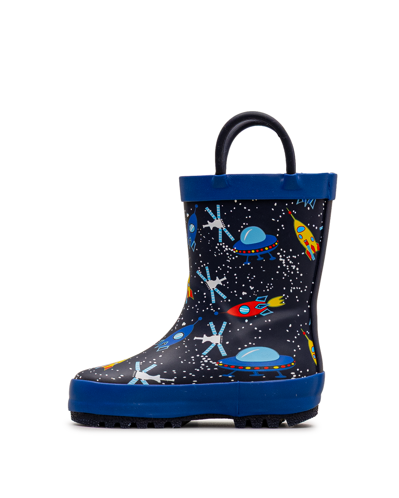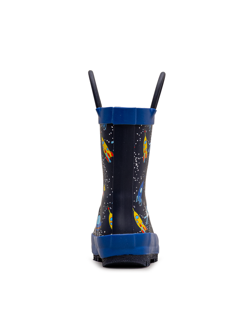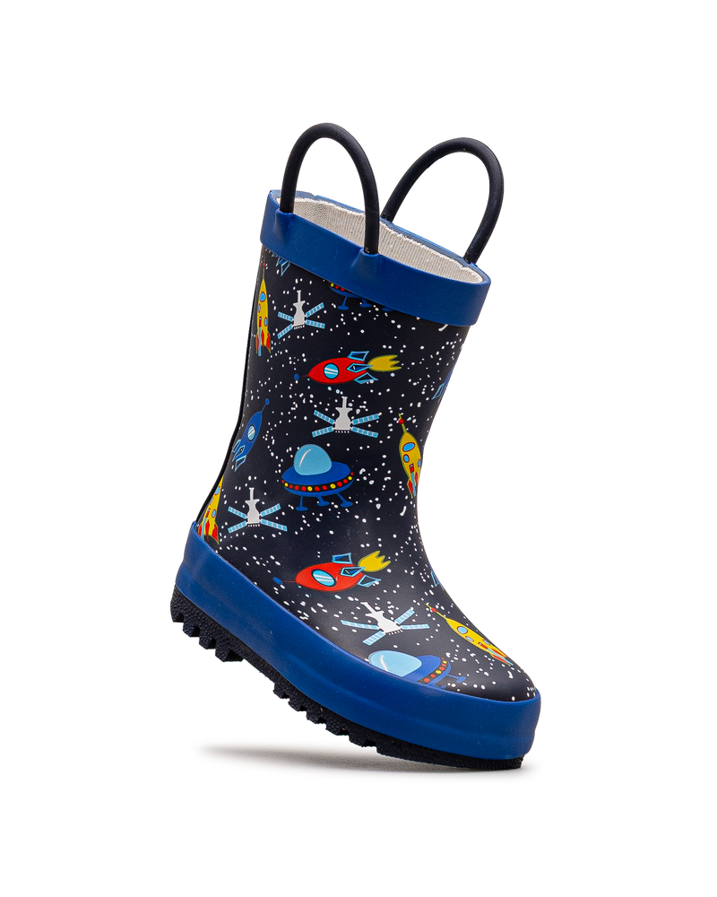 Cette botte de pluie Mythiic noire et bleue transporte les tout-petits dans l'espace avec son motif galactique amusant. Fusées, planètes et étoiles animent chaque pas sous la pluie. Les poignées robustes permettent un enfilage facile et autonome. Sa construction impérméable et sa semelle crantée assurent confort et sécurité. Un modèle qui stimule l'imagination tout en gardant les pieds au sec.