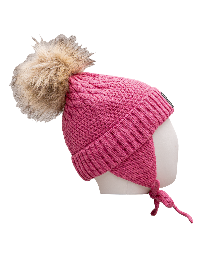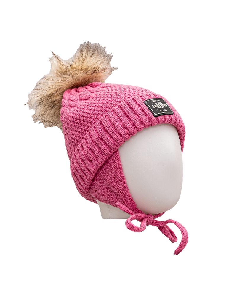 Tuque tricot pompom 2 14y - Rose - #97D-146