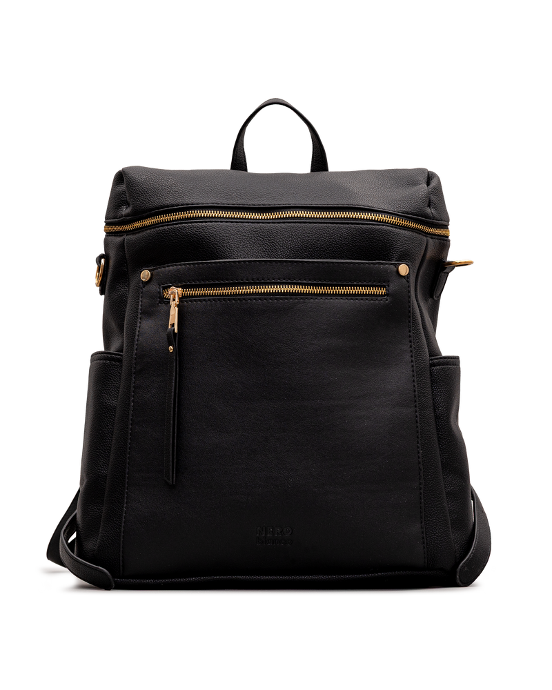 Ce sac à dos noir Nero Bianco combine élégance et praticité pour accompagner vos journées bien remplies. Ses multiples poches permettent une organisation optimale. Sa finition soignée ajoute une touche de style raffiné à votre tenue. Un choix idéal pour celles qui recherchent un accessoire polyvalent et tendance.