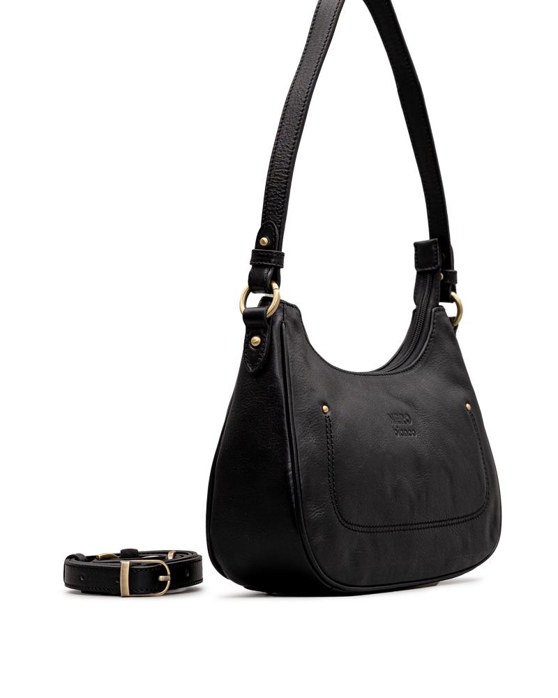 Ce sac en cuir noir conjugue élégance et fonctionnalité pour accompagner vos journées. Son format pratique permet de transporter vos essentiels avec style. La bandoulière ajustable assure un confort sur mesure. Un accessoire signé Nero Bianco qui complète parfaitement toutes vos tenues.