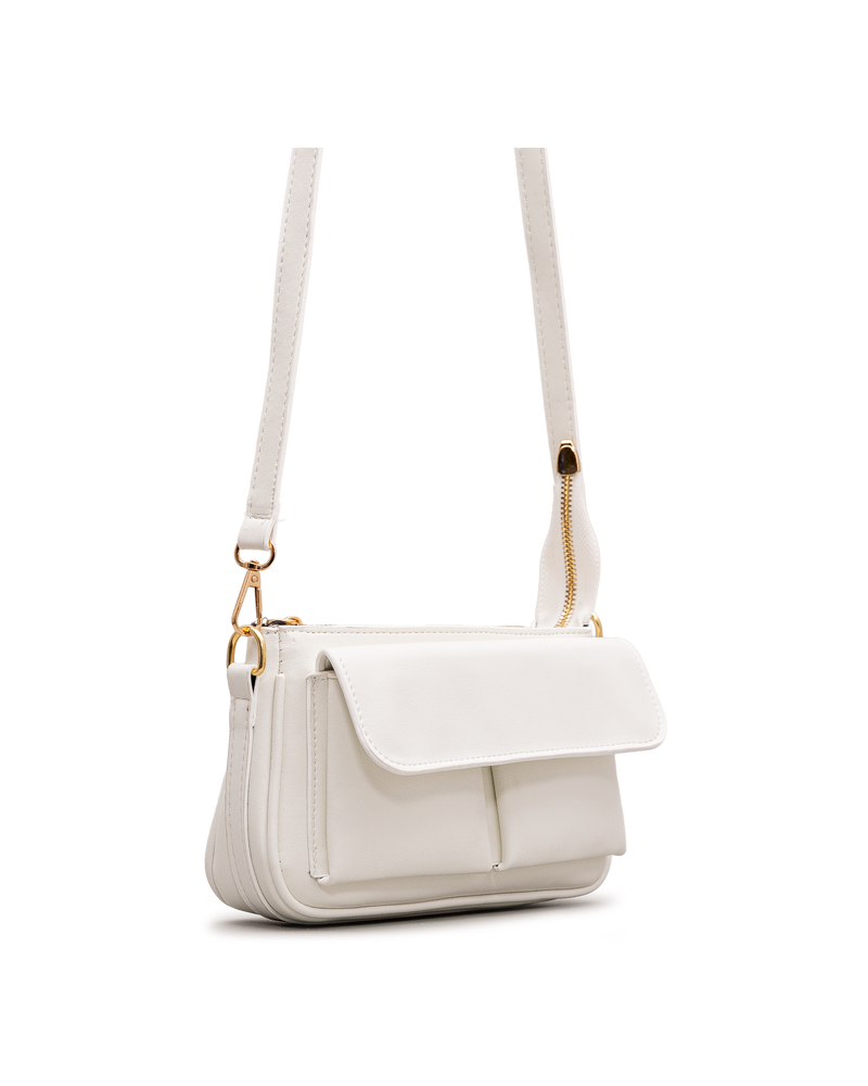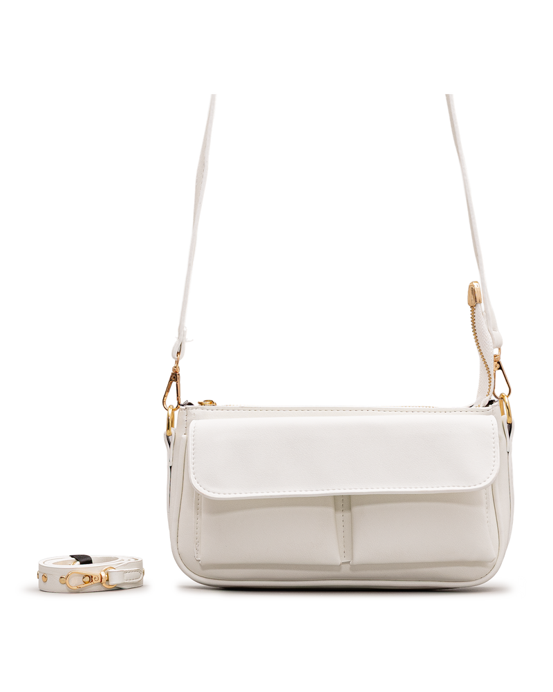 Ce sac ivoire charme par son organisation intelligente avec rabat et deux poches frontales. La bandoulière de poignet supplémentaire offre une option de port pratique. Le format rectangulaire structuré respire la fraîcheur lumineuse. Nero Bianco signe ici un accessoire polyvalent qui marie élégance intemporelle et fonctionnalité, parfait pour les femmes qui apprécient un style raffiné et lumineux au quotidien.