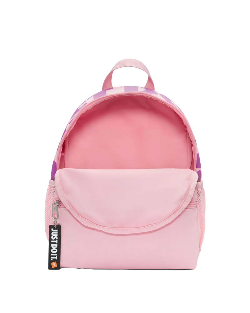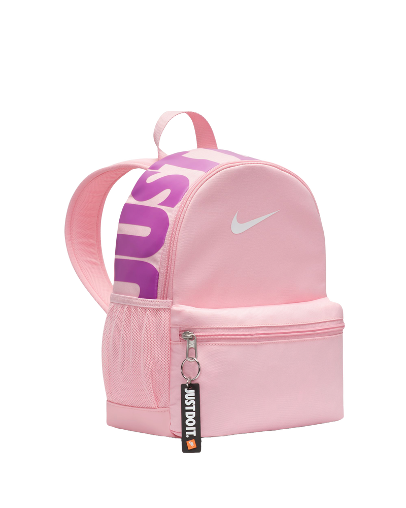Ce mini sac à dos rose pâle allie douceur et praticité dans un format réduit. Son compartiment principal et sa poche avant permettent un rangement simple. Léger et confortable à porter, il convient parfaitement aux jeunes enfants. Un choix idéal pour les sorties quotidiennes avec la touche stylée de Nike.