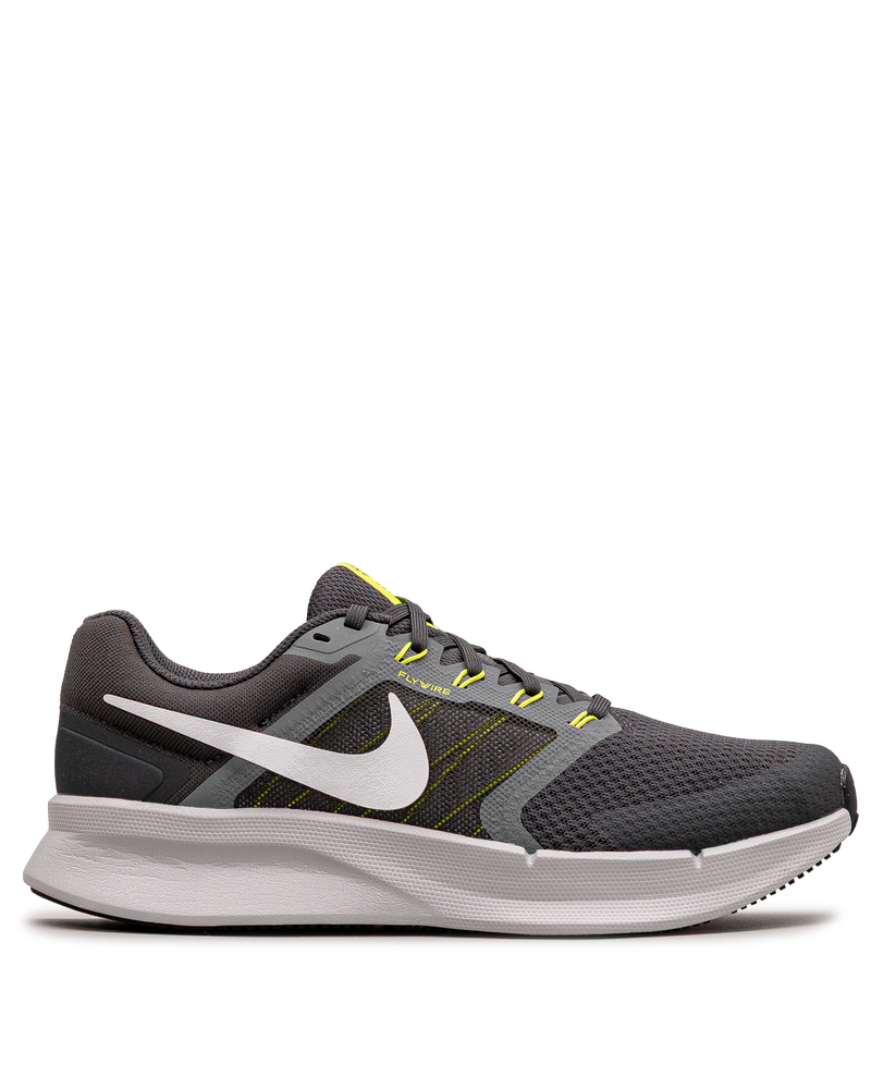 Ces chaussures gris foncé combinent légèreté et performance pour vos courses quotidiennes. Leur tige respirante avec touches de jaune apporte une note dynamique et moderne. La semelle réactive offre un excellent retour d'énergie à chaque foulée. Un modèle Nike idéal pour les hommes recherchant vitesse, confort athlétique et style énergique.