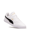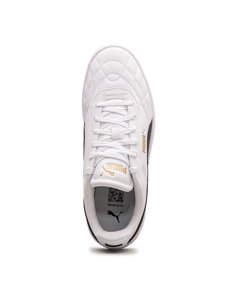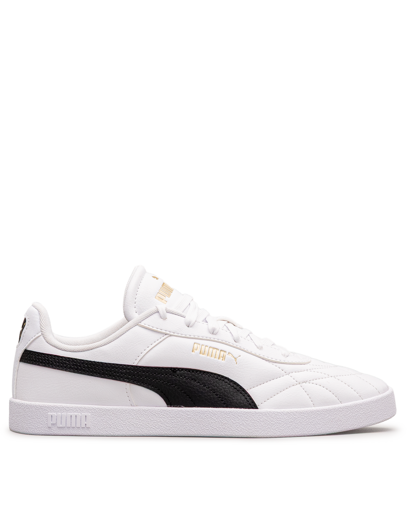 Cette chaussure blanche respire la fraîcheur intemporelle avec sa bande noire iconique. Les détails dorés apportent une signature raffinée au design classique. La semelle blanche complète l'esthétique épurée. Puma signe ici une chaussure décontractée qui marie héritage sportif et élégance minimaliste, idéale pour ceux qui recherchent un style sobre et polyvalent au quotidien.