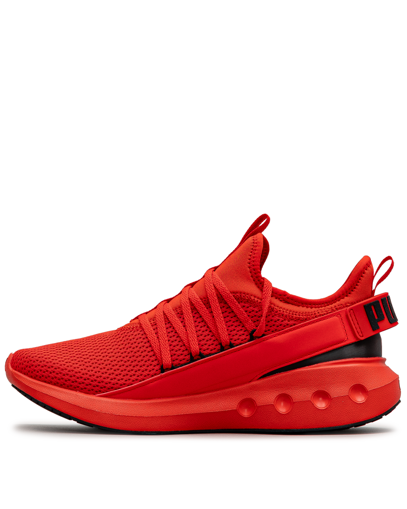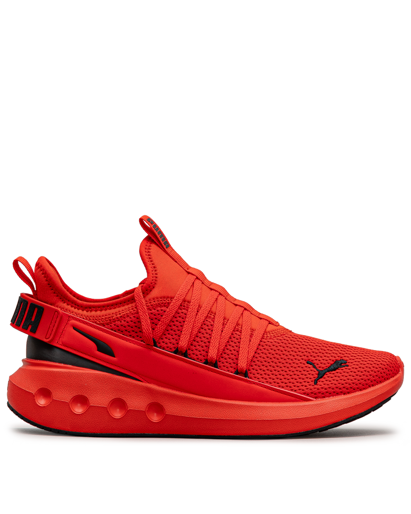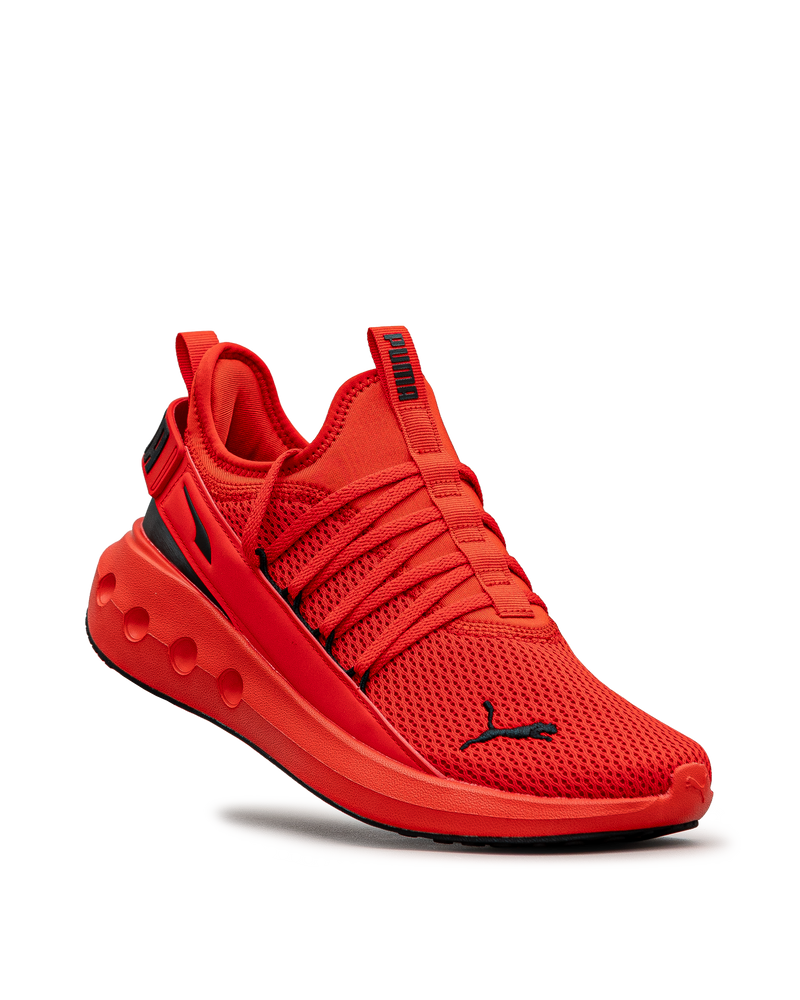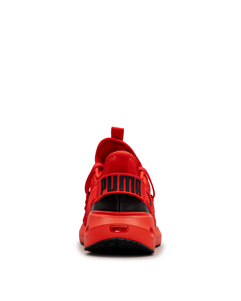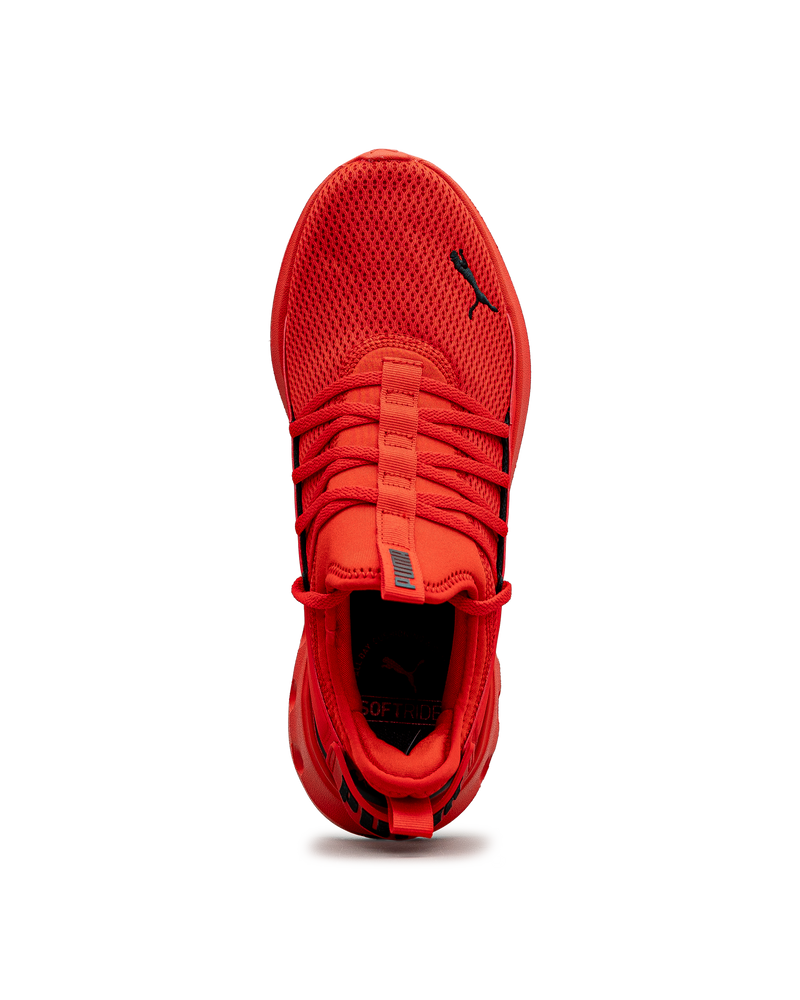 Cette chaussure rouge capte l'attention avec son design monochrome audacieux. Sa construction respirante assure une ventilation optimale. La semelle Softride épaisse offre un amorti exceptionnel et un rebond dynamique. Puma crée ici une chaussure sport moderne qui allie confort ultime et esthétique énergique, idéale pour ceux qui recherchent performance et style affirmé au quotidien.