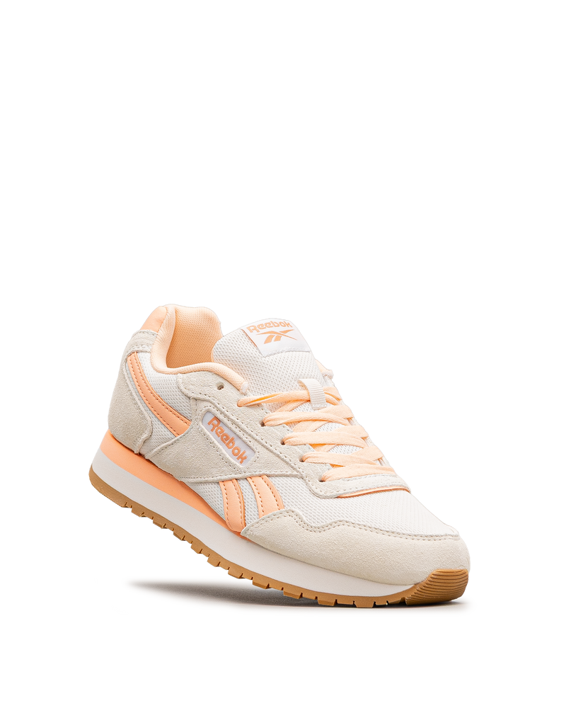 Ces chaussures Reebok beiges s'inspirent de l'esthétique rétro des années 70 pour offrir un look intemporel et décontracté. Les accents pêche sur la languette et les renforts latéraux apportent une touche de couleur subtile qui réchauffe l'ensemble, tandis que la semelle extérieure gomme caramel complète l'allure vintage avec cohérence. Le logo Reebok sur la languette rappelle l'héritage sportif de la marque. Une chaussure polyvalente qui s'intègre aussi bien à une tenue décontractée qu'à un look plus soigné.
