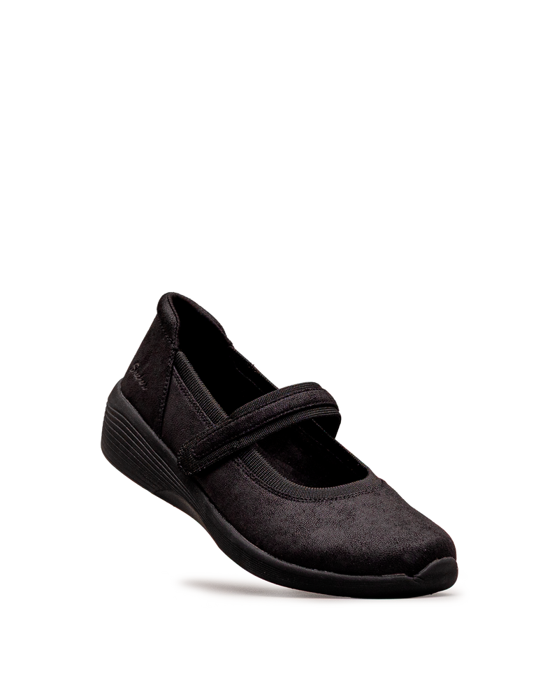 Ces chaussures Skechers noires unies combinent simplicité et confort pour un usage quotidien. Leur bande à velcro permet un ajustement facile et rapide. Légères et souples, elles épousent bien le pied. Un bon choix pour les femmes à la recherche de praticité au quotidien.
