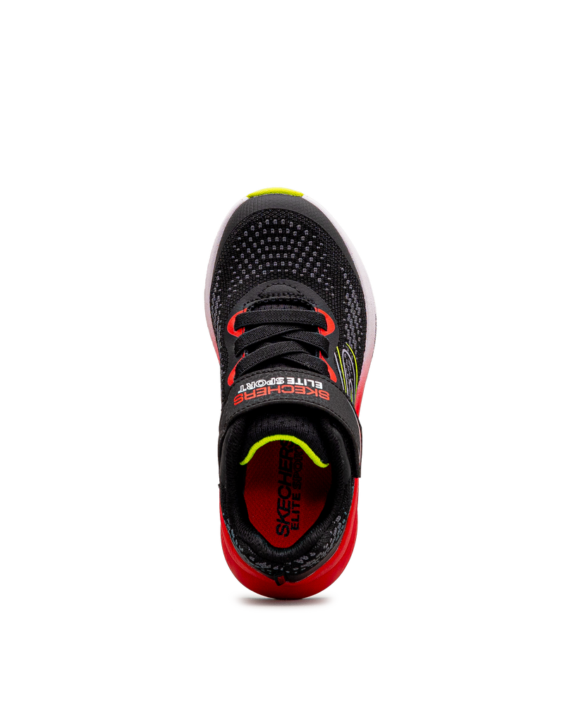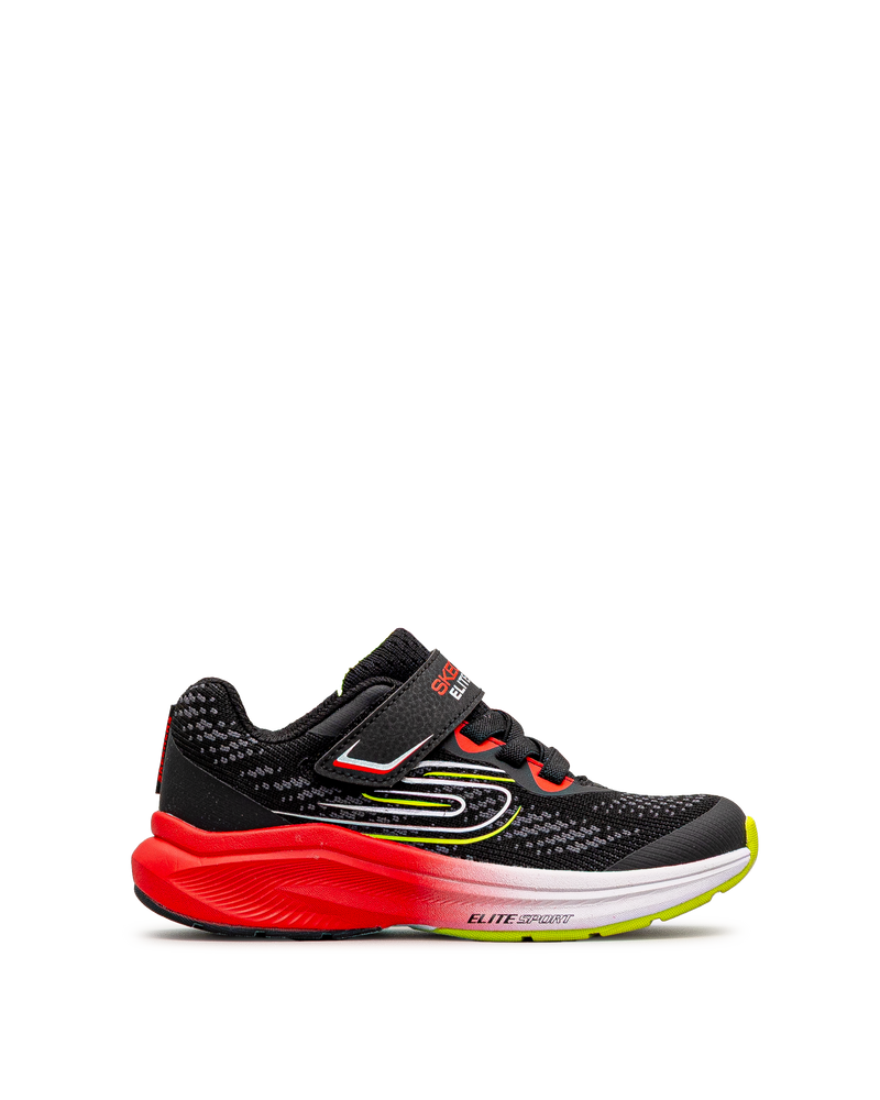 Ces chaussures Skechers noires et rouges sont idéales pour les enfants actifs. Leur semelle élite procure un bon amorti à chaque pas. Le velcro pratique permet un ajustement rapide et sûr. Un modèle stylé conçu pour le quotidien et les activités sportives.
