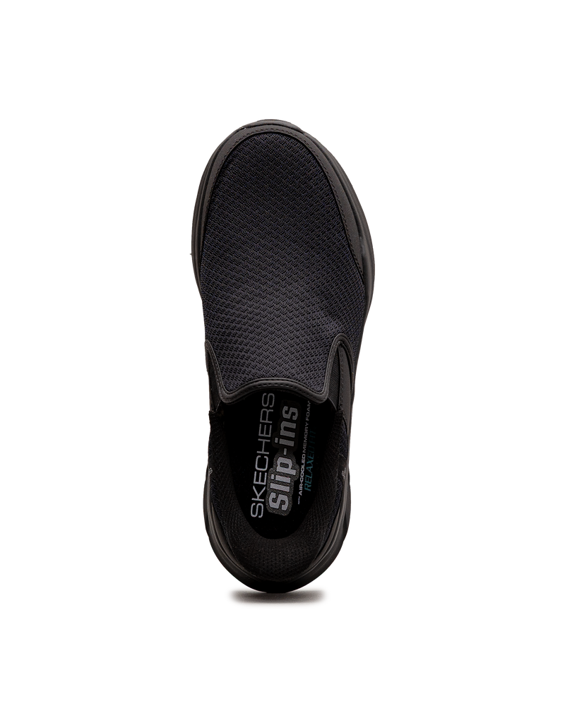 Ces chaussures noires allient confort décontracté et facilité d'enfilage pour vos journées détendues. Leur technologie Slip-ins permet de les enfiler rapidement sans se pencher. La semelle légère et coussinée assure un bien-être optimal lors de tous vos déplacements. Un modèle Skechers idéal pour les hommes recherchant praticité, confort sans effort et style intemporel.
