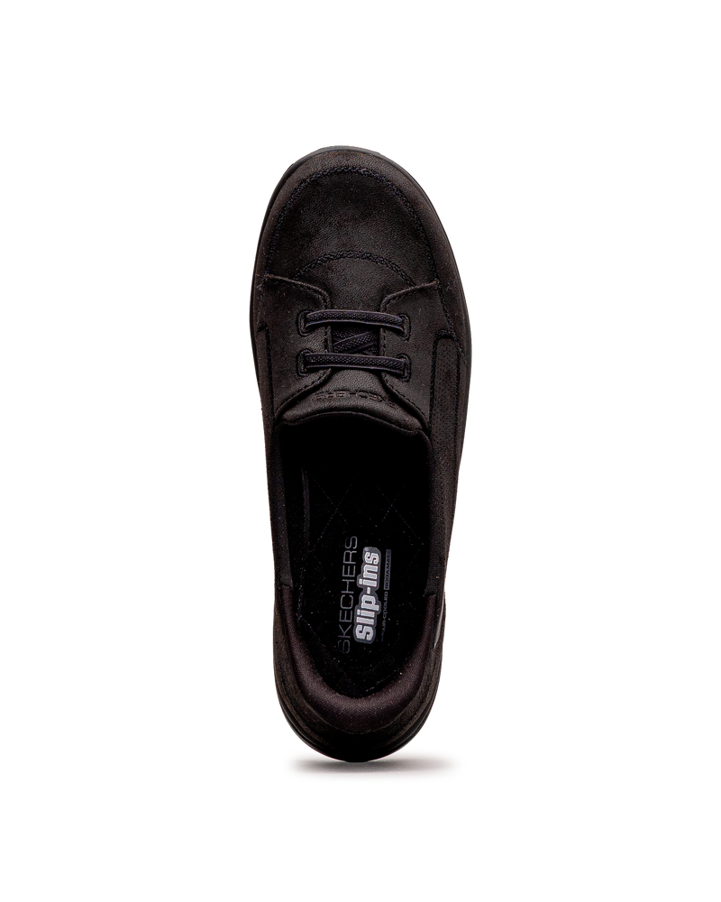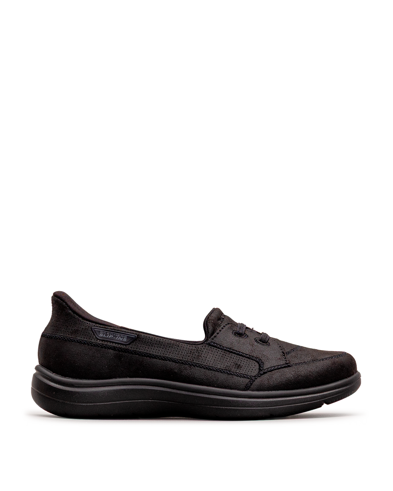 Ces chaussures noires se démarquent par leur confort remarquable et leur allure épurée. Leur semelle coussinée offre une absorption des chocs idéale pour les longues journées actives. Faciles à enfiler et légères, elles garantissent une sensation de bien-être à chaque pas. Un modèle signé Skechers conçu pour allier élégance et confort au quotidien.