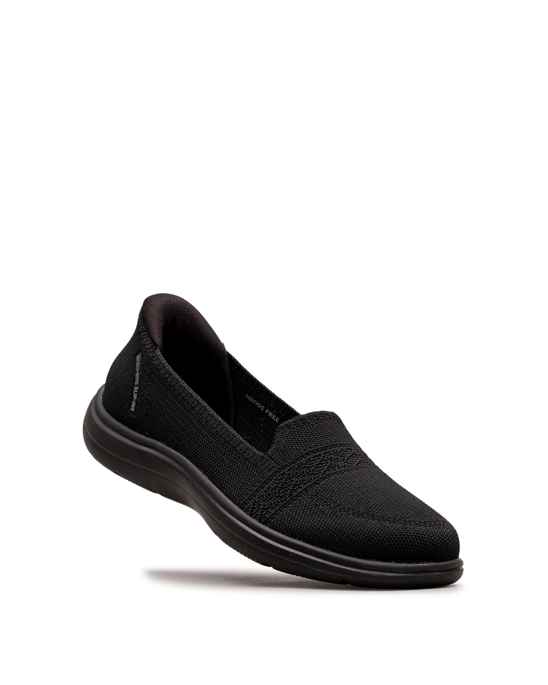 Ces chaussures noires Skechers au look de ballerine moderne séduisent par leur tige en tricot texturé avec motif en relief, alliant style et respirabilité. Dotées de la technologie Slip-ins, elles s’enfilent sans effort, pour un quotidien sans compromis. La semelle intérieure rembourrée assure un amorti doux et un maintien confortable toute la journée, tandis que la semelle extérieure légère garantit stabilité et durabilité. Un essentiel polyvalent qui passe sans effort du bureau à la ville.