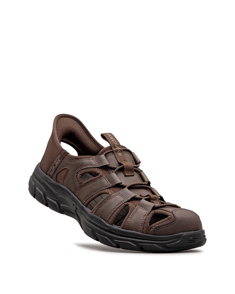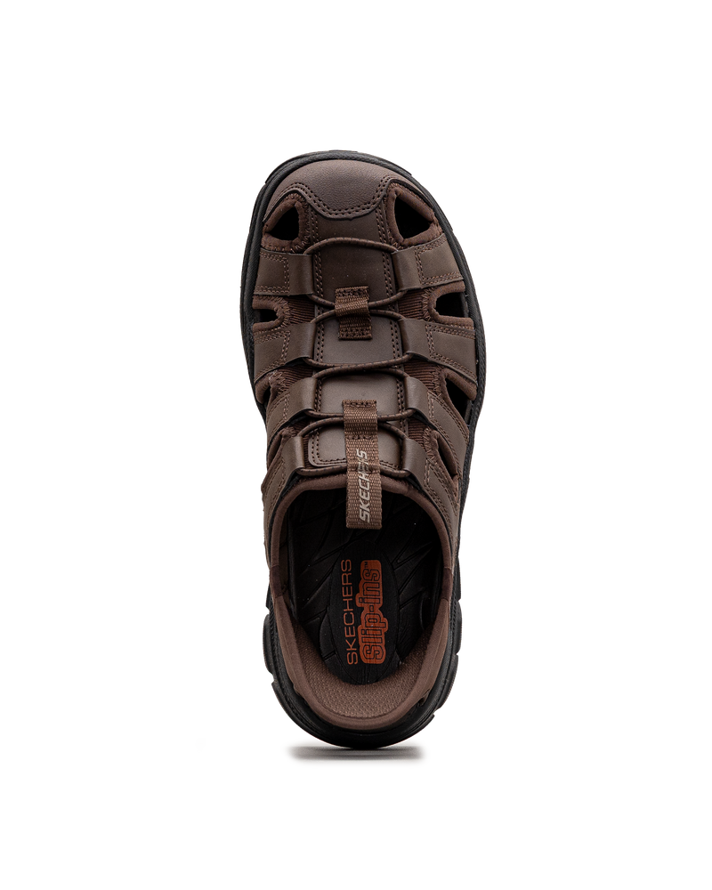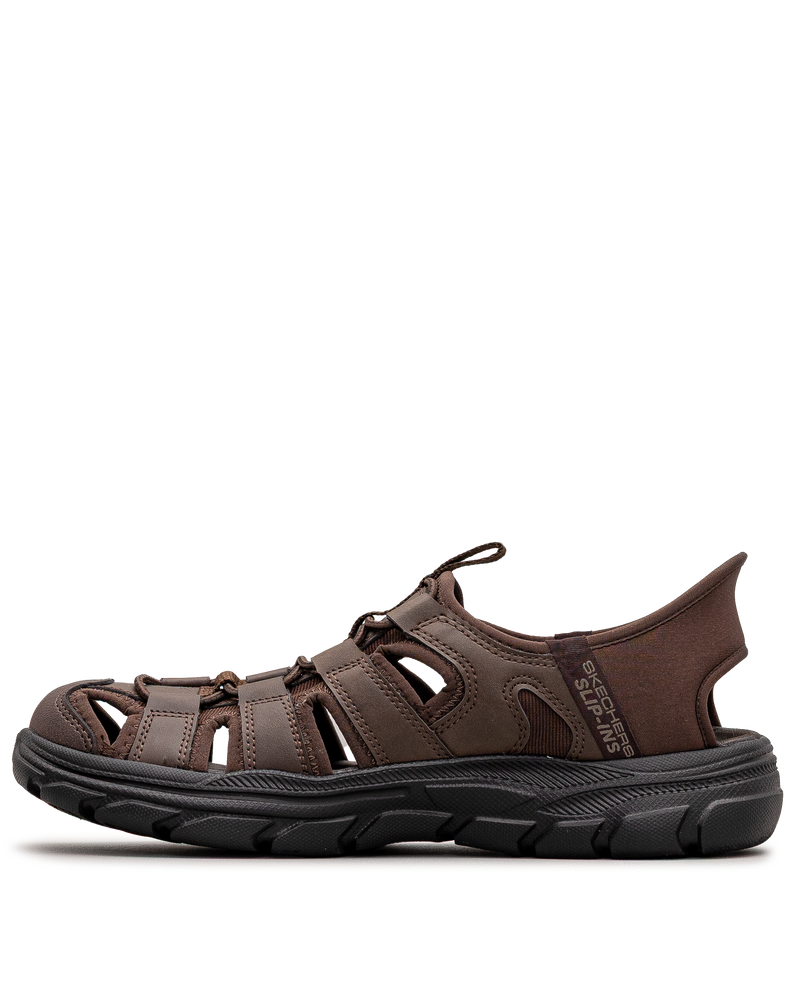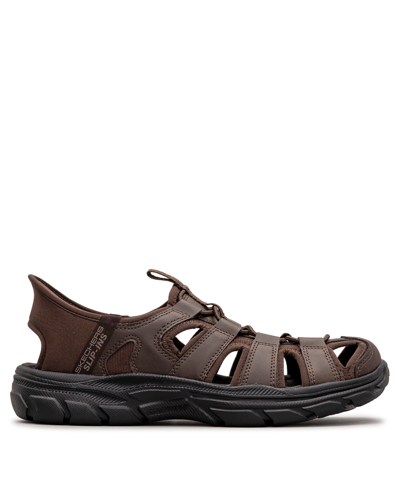 Ces sandales brunes sont idéales pour les journées actives sous le soleil. Leur construction ajourée procure une excellente aération en tout temps. Faciles à enfiler grâce à la technologie slip-ins, elles offrent un soutien souple à chaque pas. Un choix judicieux pour une allure décontractée signée Skechers.