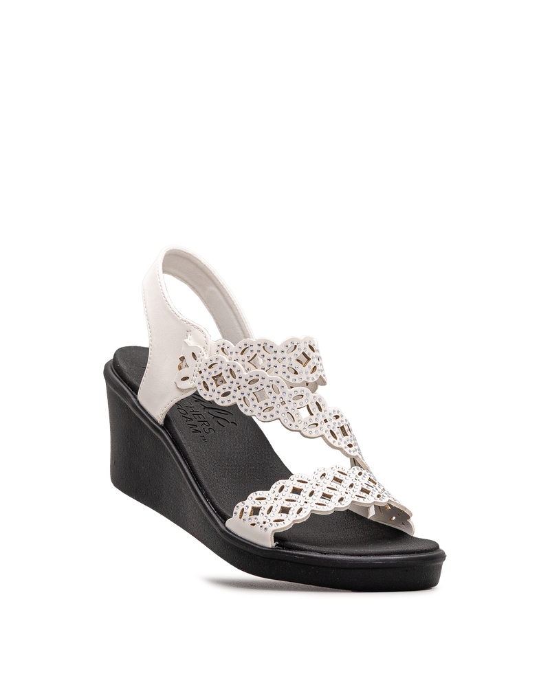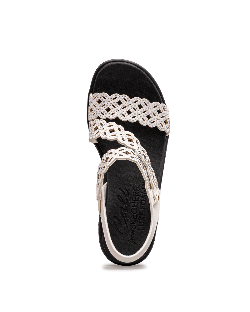 Ces sandales blanches pour femme combinent charme et confort au quotidien. Leur structure ajourée décorée de brillants capte la lumière avec finesse. Faciles à enfiler, elles épousent bien le pied pour une marche agréable. Une création Skechers parfaite pour les belles journées.