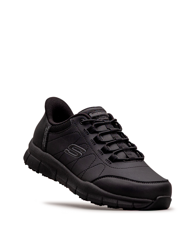 Ces chaussures Skechers noires offrent un confort exceptionnel pour vos journées actives. Leur design sans lacets assure une grande facilité d'enfilage. Légères et souples, elles épousent naturellement les mouvements du pied. Un choix pratique pour ceux qui recherchent le confort au quotidien.