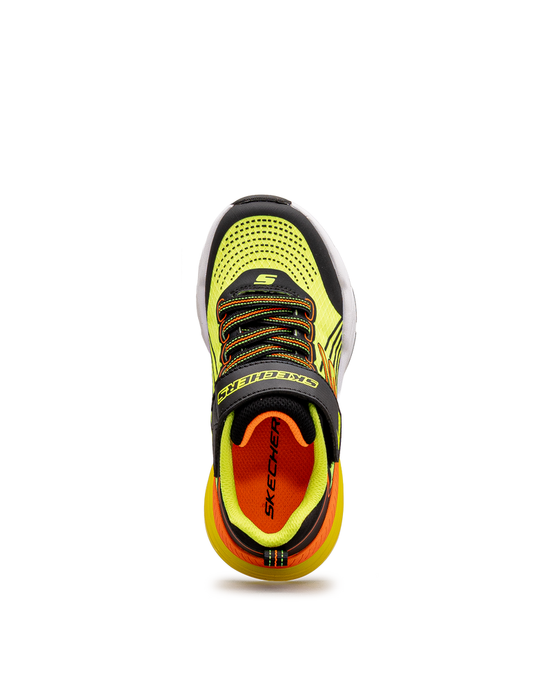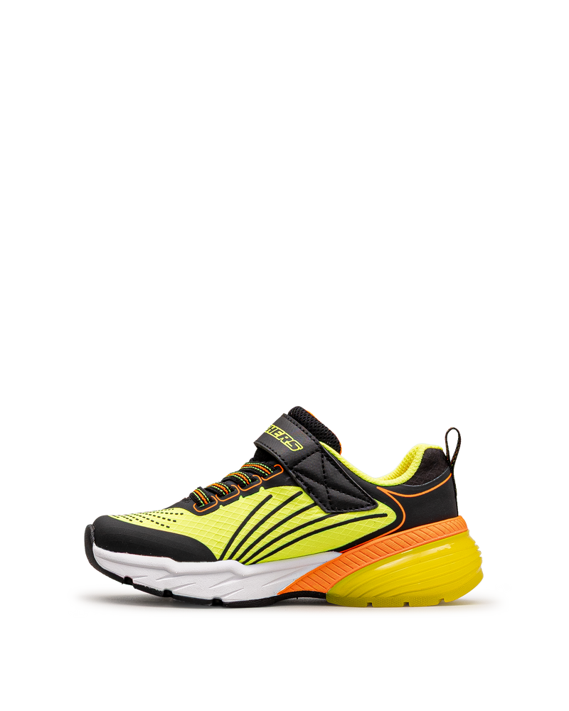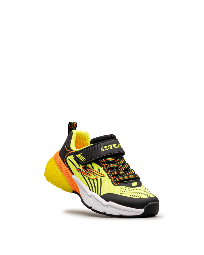Ces chaussures Skechers jaunes affichent un design sportif ultra-dynamique. Leur fermeture velcro combinée aux lacets élastiques facilite l'enfilage rapide. Les accents noirs et orange ajoutent une touche énergique au look. La semelle épaisse assure amorti et confort lors des activités. Un modèle vibrant qui motive les jeunes à rester actifs.