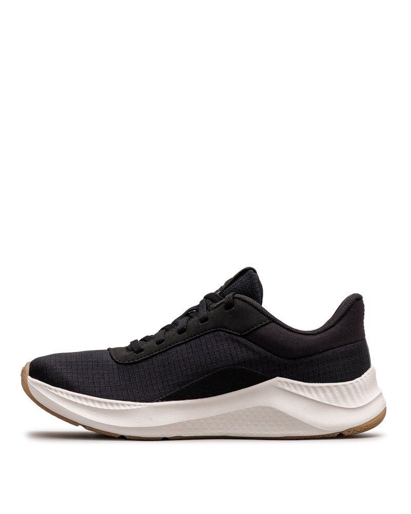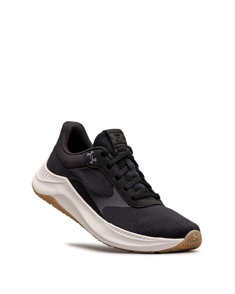 Ces chaussures noires offrent un design épuré et une polyvalence remarquable pour toutes vos activités. Leur tige respirante favorise la circulation de l'air pour un confort durable. La semelle coussinée absorbe les impacts et assure une stabilité fiable à chaque foulée. Un modèle Under Armour idéal pour les femmes recherchant simplicité, confort quotidien et performance accessible.