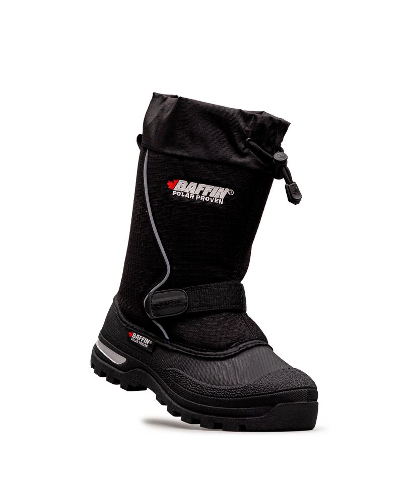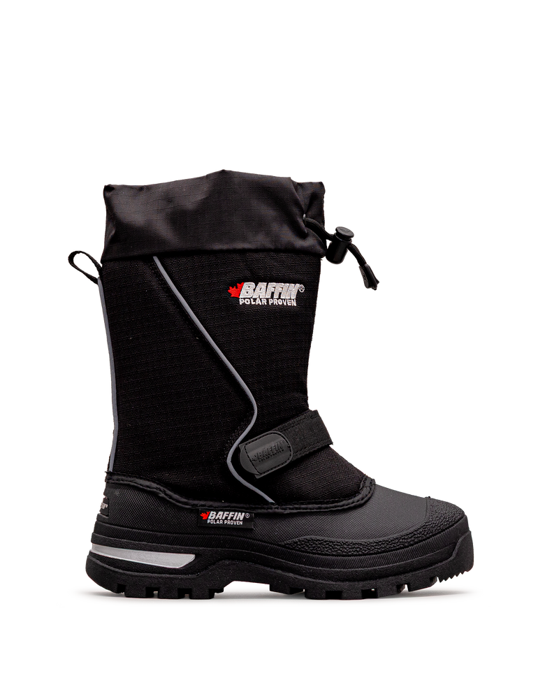 Ces bottes Baffin noires protègent efficacement contre le froid et la neige. Leur semelle résistante assure une excellente adhérence sur les surfaces glacées. Grâce à leur ajustement pratique, elles sont faciles à enfiler et à sécuriser. Un choix fiable pour les enfants actifs durant la saison hivernale.