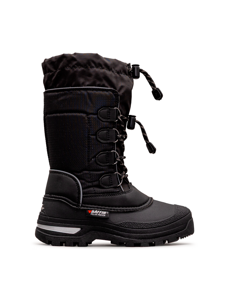 Ces bottes Baffin noires offrent une chaleur fiable même lors des journées les plus froides. Leur semelle adhérente assure stabilité sur la neige et la glace. Faciles à ajuster grâce à leur laçage pratique, elles garantissent un maintien optimal. Un choix parfait pour les enfants actifs durant l’hiver.