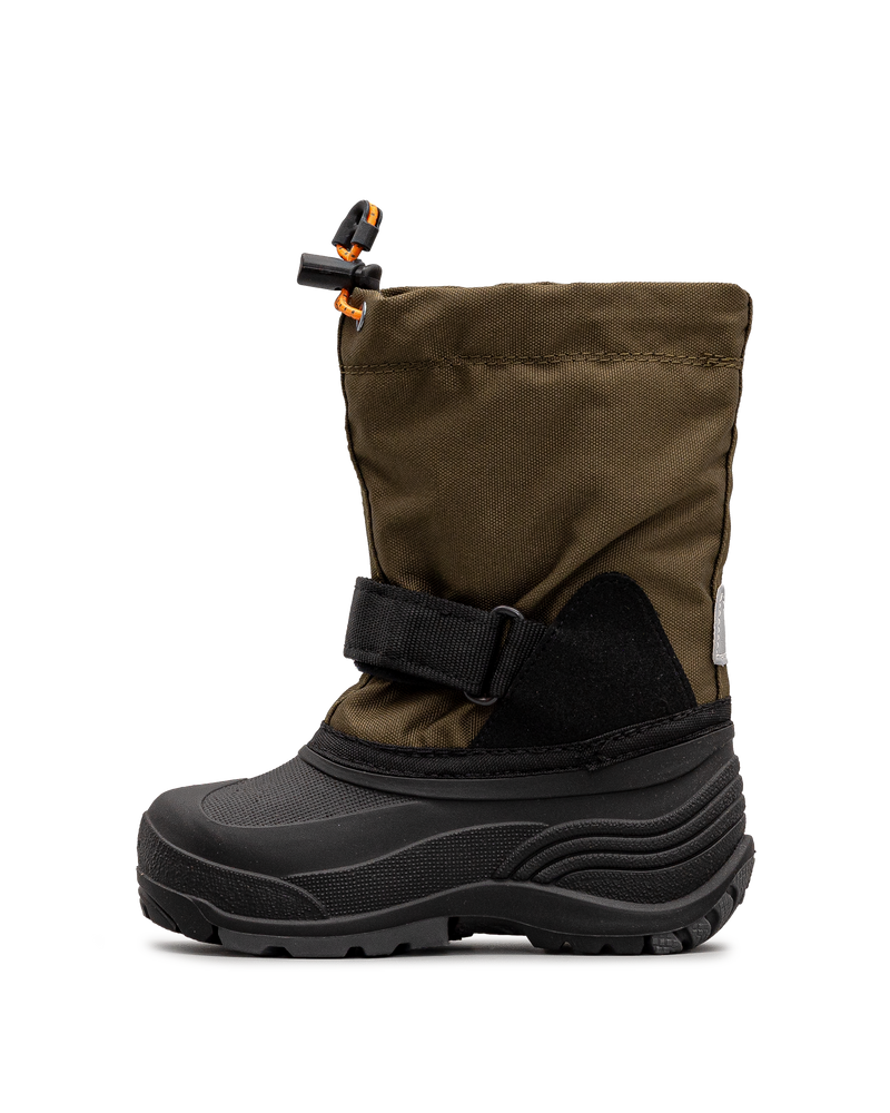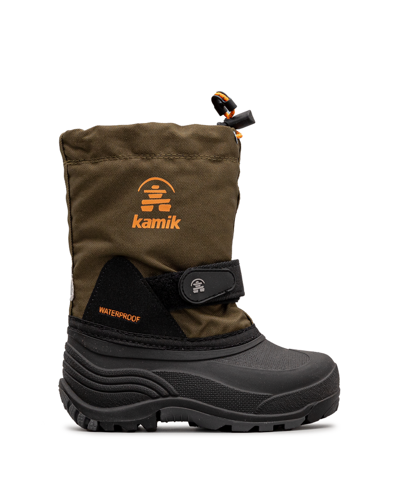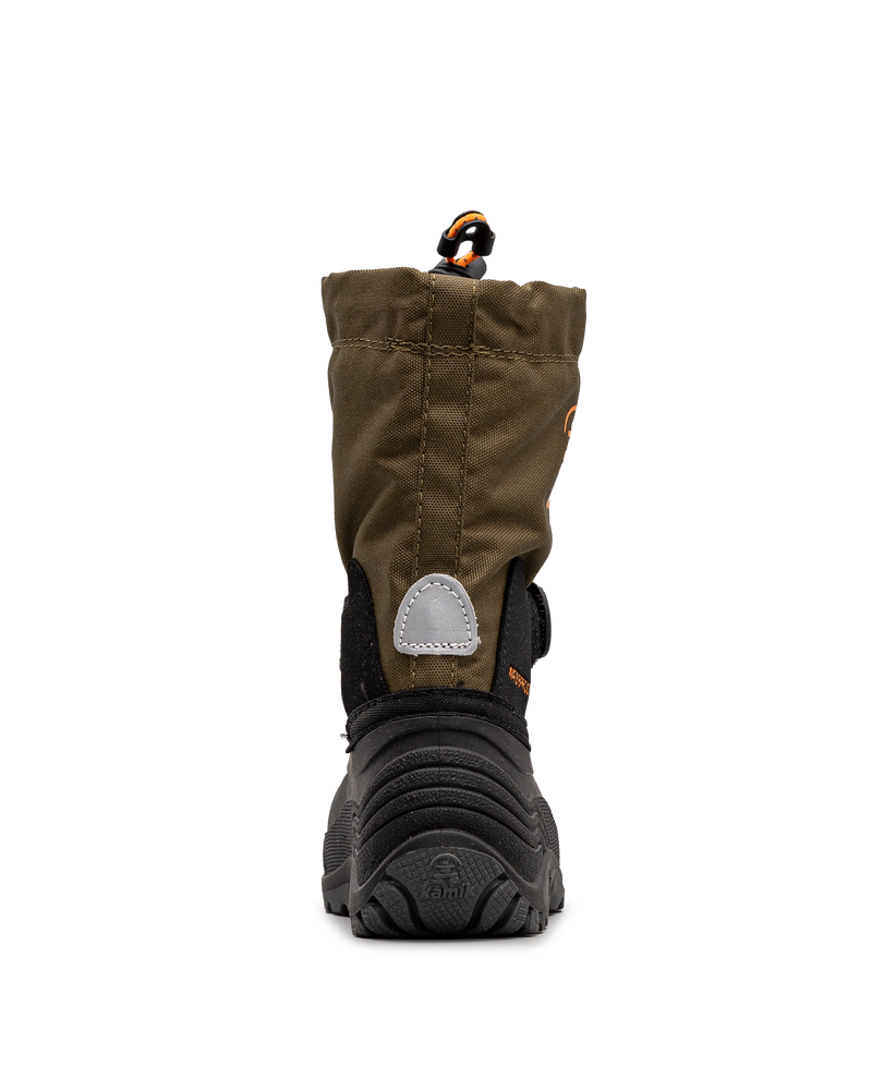 Les bottes d’hiver Kamik pour enfant, en vert kaki, sont conçues pour affronter les conditions hivernales les plus rudes. Entièrement imperméables, elles gardent les pieds de votre enfant au sec tout au long de la journée, que ce soit dans la neige ou sous la pluie. Grâce à leur fermeture auto-grippante pratique, elles sont faciles à enfiler et à ajuster pour un maintien sûr. La semelle extérieure robuste assure une adhérence maximale, idéale pour jouer en toute sécurité, même sur des surfaces glissantes. Chaudes et résistantes, ces bottes sont un choix parfait pour affronter l’hiver avec style et confort.
