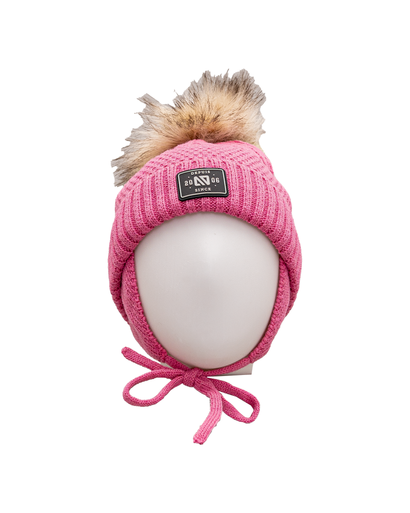 Tuque tricot pompom 2 14y - Rose - #97D-146