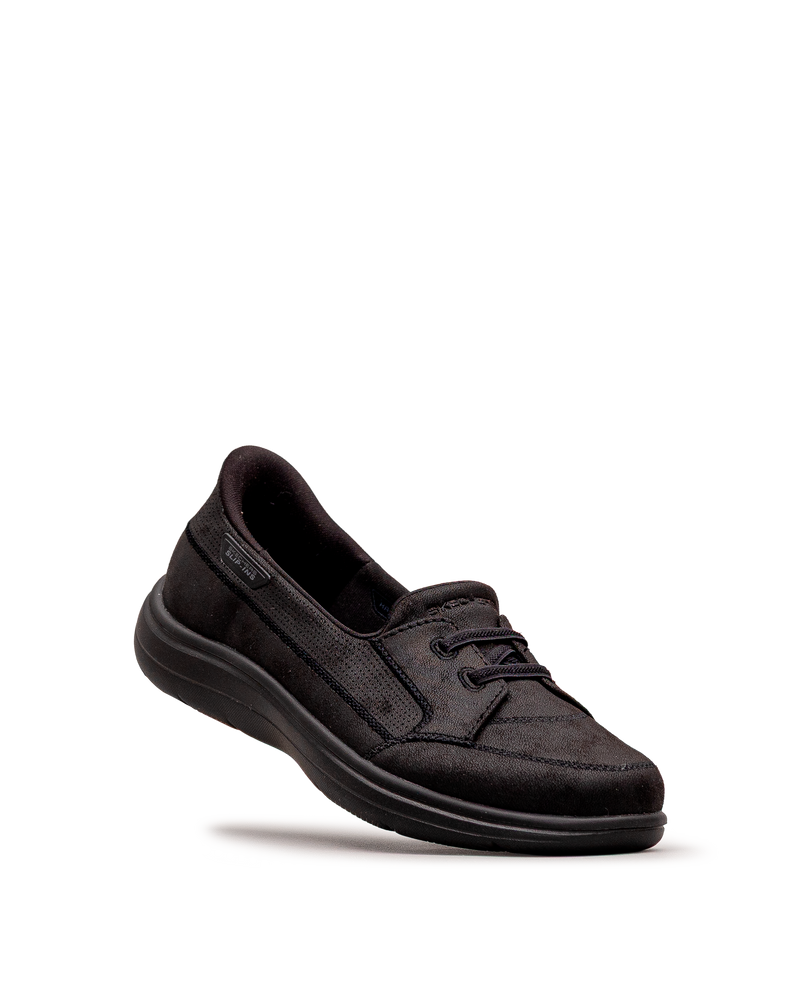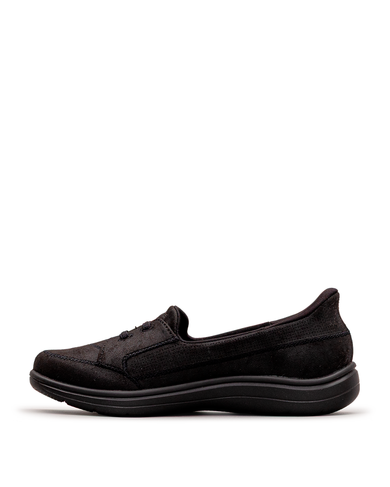 Ces chaussures noires se démarquent par leur confort remarquable et leur allure épurée. Leur semelle coussinée offre une absorption des chocs idéale pour les longues journées actives. Faciles à enfiler et légères, elles garantissent une sensation de bien-être à chaque pas. Un modèle signé Skechers conçu pour allier élégance et confort au quotidien.