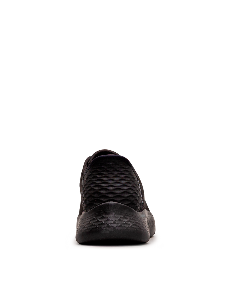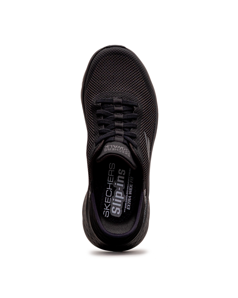 Ces chaussures noires unies se démarquent par leur design minimaliste et leur respirabilité idéale pour un usage quotidien. Leur semelle amortissante procure un soutien durable, même pour de longues marches. Avec leur coupe très large, elles garantissent un ajustement confortable et adapté. Un choix idéal pour combiner élégance, confort et la qualité Skechers.