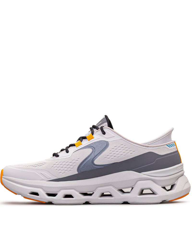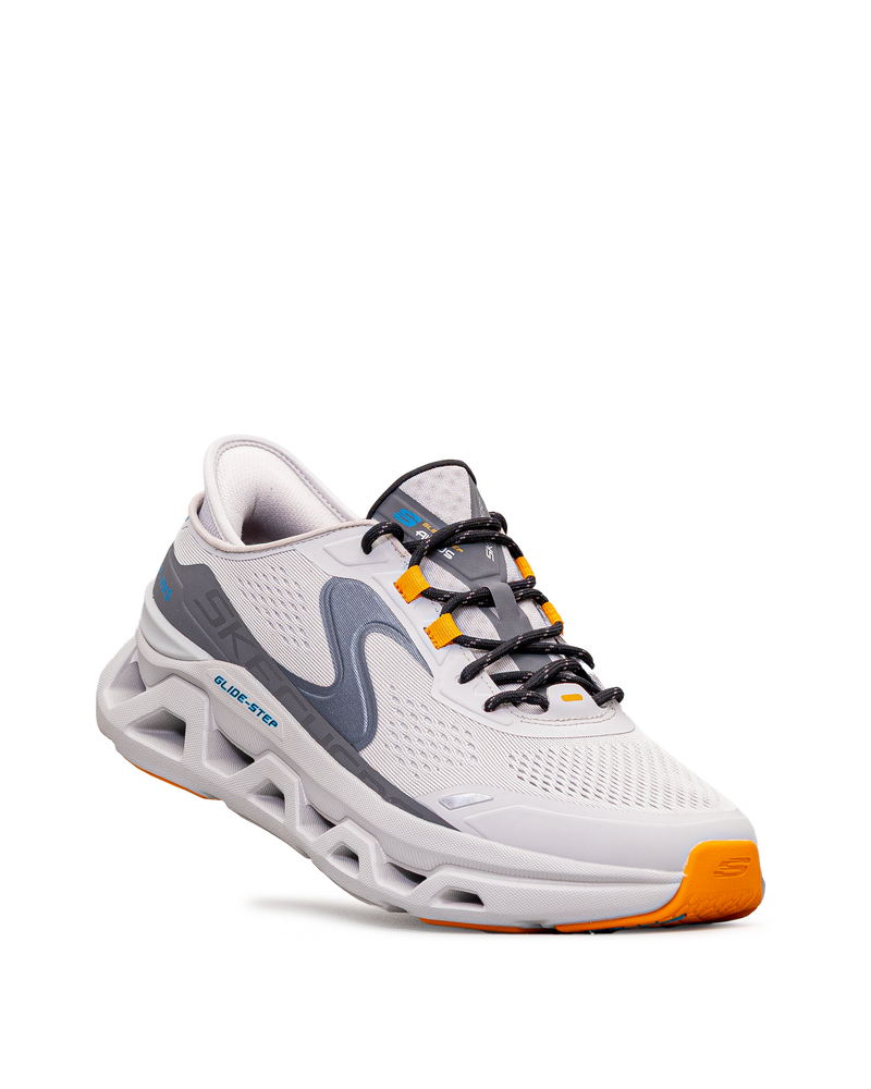 Ces chaussures grises Skechers offrent un enfilage rapide grâce à la technologie Slip-Ins. Leur semelle Glide-Step absorbe les chocs tout en favorisant un bon alignement. Le maintien du pied est assuré par leur structure bien pensée. Un choix confortable pour les journées actives.